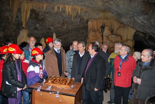 ενδιαφέρον του σπηλαίου από τον Πρόεδρο του Δ.Σ. Επ. Καθηγητή Παν/μίου Αθηνών Δρ. Κων. Μερδενισιάνο, η οποία επαναλήφθηκε λόγω του μεγάλου αριθμού των συμμετεχόντων τρείς φορές.